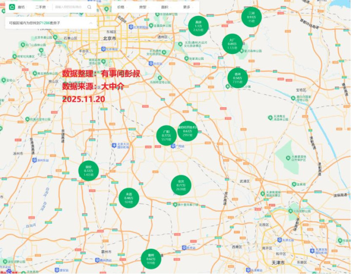不管是燕郊,还是大厂等区域,都是在降的。